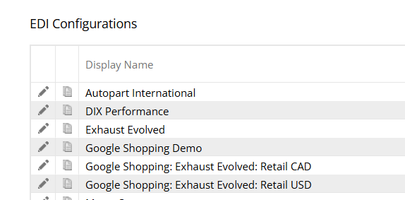 Integrations → EDI Configurations