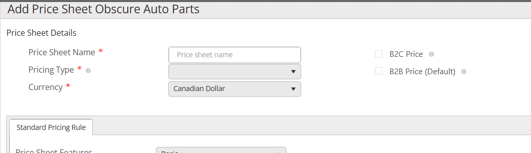 B2C Price: This checkbox is used to set this Price Sheet to be used on your Mecka run e-commerce website.