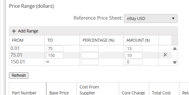 Refresh: Click this button to see the results of your Price Sheet. This will allow you to determine if the settings you chose are what you wanted.