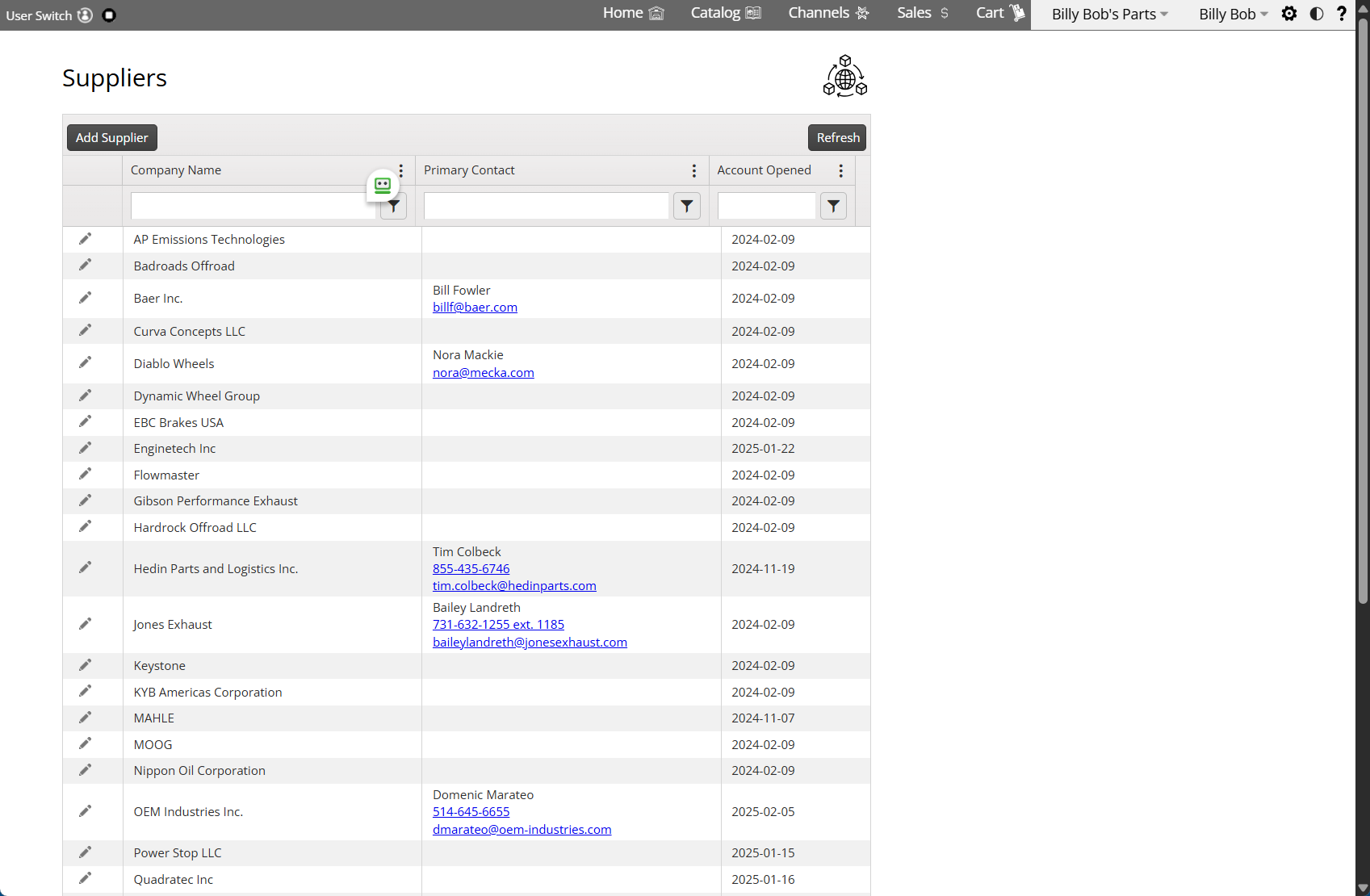 Here is where you control all your suppliers.